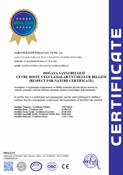 Şirketimiz çevre ve sürdürülebilirlik için katkılarını daima aktif tutmaktadır. Çevre ve ekolojik dengenin korunması adına ISO 14001 Çevre Yönetim Sistemi, Doğaya Saygı Belgesi şartlarına uygun çalışmaktadır ve sistemlerini belgelemiştir.